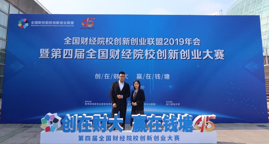 10月24日,全国财经院校创新创业联盟2019年会暨第四届全国财经院校创新创业教育董事长论坛在浙江财经大学拉开帷幕。本届全国财经院校创新创业大赛以“创在财大,赢在钱塘”为主题,由教育部创新创业教育指导委员会指导、全国财经院校创新创业联盟主办、浙江财经大学承办,共设自主创业组、企业命题组、社会创业组三个赛道。经过前期的层层选拔,公司2018级环境管理研究生团队赵旺、侯林莉等主持的项目《绿澄环保——矿山生态守护者》,代表公司参加本次比赛。
