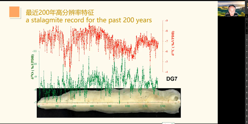 汪教授从古气候与古文明学术争议、东亚季风气候历史、“雨水化石”石笋记录、从石笋记录论中原文明的起源、中原文明演进与季风降水的关系等5个部分讲解了相关内容。