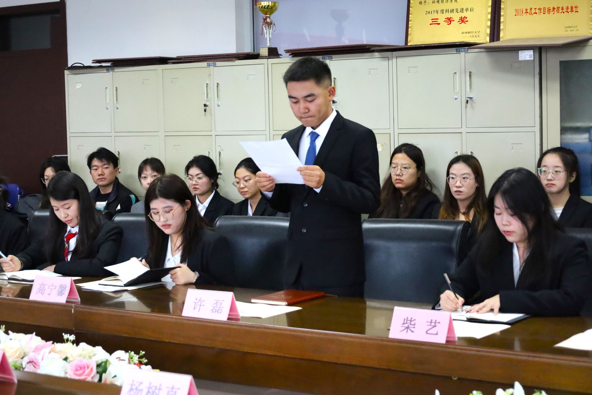 第一届研究生会执行主席许磊、科研部负责人张婕作表态发言。他们表示,将牢记服务宗旨,团结带领全体研究生同学,紧密围绕学院中心工作,充分发挥桥梁纽带作用,为学院建设发展和研究生成长成才贡献力量。