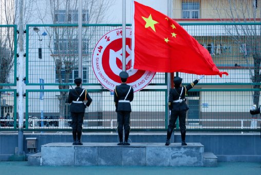 晨光熹微,清风拂面,朝阳为整个校园镀上一层金色光晕。伴随着清脆的口令,国旗护卫队的队员们身姿笔挺、精神抖擞,迈着铿锵有力的步伐,护送五星红旗缓缓入场。当《义勇军进行曲》奏响,鲜艳的五星红旗迎着晨光冉冉升起,全体师生自觉肃立,目光坚定,高声齐唱国歌,歌声嘹亮、久久回荡。