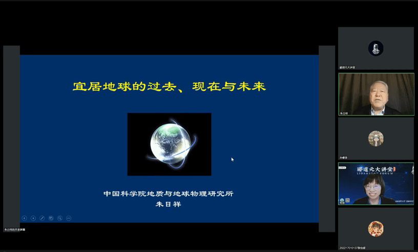 在第55个地球日即将到来之际,2024年4月17日,yl7703永利集团官网主办的“郦道元大讲堂”第九期如期开讲,应yl7703永利集团官网经理邀请,中国科学院地质与地球物理研究所朱日祥院士为公司师生作了题为“宜居地球的过去、现在和未来”的线上学术交流报告。讲座由yl7703永利集团官网经理主持,学院全体领导班子成员及200余名师生在线参加了报告会。