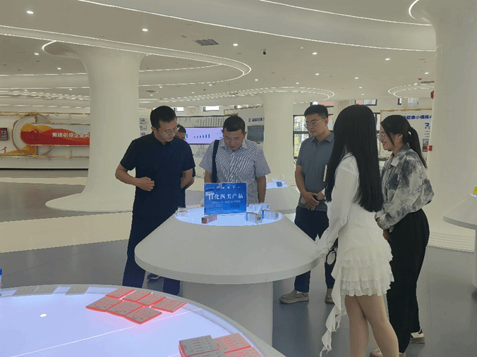 随后,张艳霞主管带领大家参观了园区的整体布局、入驻企业、产品专利、建设蓝图等情况。学院教师肯定了园区的未来发展潜能。