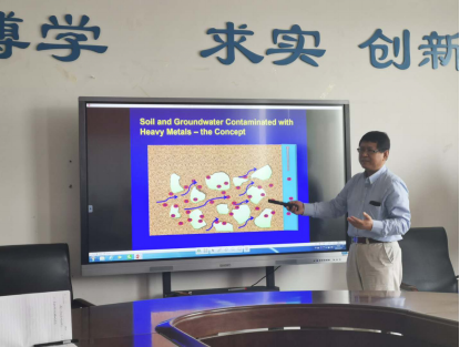 赵东叶教授作了题为“Development of Stabilized Nanoparticles for in situ Remediation of Metals-Contaminated Soil and Groundwater and A Brief Introduction of Auburn University and US Education”的专题报告,报告主要分两部分:(一)稳定化纳米颗粒在土壤和地下水原位修复中的应用。首先介绍了纳米科技的概念及其在环境保护中的应用,讲解了纳米科技用于土壤、地下水修复的固定机制,说明了选择纳米颗粒的原因、挑战及选择淀粉和纤维素作为稳定剂的优势,介绍了稳定化纳米颗粒原位去除有机物和固定重金属的实验室和场地观测效果。(二)奥本大学及美国教育的简要介绍。介绍了奥本大学的历史、排名、杰出员工和课外活动,并对招生名额和资助项目进行了重点介绍。赵教授表示欢迎公司教师赴奥本大学进行学术访问,鼓励公司硕士报考奥本大学博士研究生项目。最后,多位老师就该领域的热点问题与赵老师进行了深入的交流,取得了很好的效果。