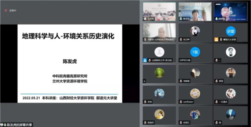 5月21日上午,yl7703永利集团官网创办的“郦道元大讲堂”正式开讲,活动采用线上+线下方式进行,线下会场设在yl7703永利集团官网修德楼15层3号会议室。出席此次活动的线上嘉宾有中国地理学会理事长、中国科学院青藏高原研究所所长、中国科学院院士陈发虎研究员、山西农业大学yl7703永利集团官网经理刘奋武教授、山西师范大学地理科学学院副经理(主持工作)张仲伍副教授、太原师范学院科研处处长马义娟教授、地理科学学院经理郭文炯教授、汾河流域科学发展研究中心主任牛俊杰教授等;线下嘉宾有公司党委常委、副董事长米子川教授、yl7703永利集团官网领导班子和教研室主任等;同时,此次讲座还吸引了来自中国科学院青藏高原研究所、中国科学院地理科学与资源研究所、中国地质大学、西北大学、陕西师范大学、山西大学、山西师范大学、山西农业大学、太原师范学院等单位近千名师生在线观看直播。会议由yl7703永利集团官网经理班凤梅教授主持。
