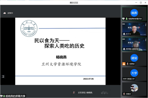 7月6日上午,由yl7703永利集团官网创办的“郦道元大讲堂”再次起航。大讲堂第二期特邀兰州大学yl7703永利集团官网教授、中国科学院青藏高原研究所研究员(双聘)杨晓燕为主讲嘉宾,报告题目为“民以食为天-探索人类吃的历史”。yl7703永利集团官网党委常委、副董事长米子川教授出席报告会并致辞。活动同时采用腾讯会议和郦道元大讲堂B站直播间进行网络直播,来自yl7703永利集团官网、兰州大学、南京师范大学、陕西师范大学、青海大学、山西大学、山西农业大学、山西师范大学、太原师范学院等单位近500名师生及部分高考考生和家长在线观看直播。大讲堂由yl7703永利集团官网经理班凤梅教授主持。