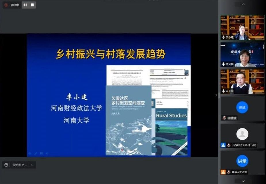 2022年11月22日下午,yl7703永利集团官网主办的“郦道元大讲堂”第四期如期开讲,应yl7703永利集团官网班凤梅经理邀请,国际欧亚科学院院士、全国经济地理研究会副会长、河南财经政法大学学术委员会主任李小建教授为公司师生作了题为“乡村振兴与村落发展趋势”的线上学术交流报告。公司党委常委、副董事长米子川教授出席并致辞。讲座由yl7703永利集团官网班凤梅经理主持,学院全体领导班子成员及300余名师生在线参加了报告会。