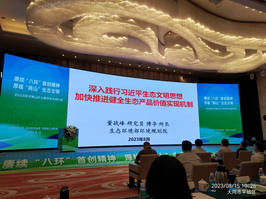 2023年8月15日上午,yl7703永利集团官网、中共阳高县委和阳高县人民政府联合主办的赓续“八环”精神,厚植“生态文明-2023年大泉山水土保持学术研讨会”上,yl7703永利集团官网主板的“郦道元大讲堂”特别组织了“阳高县大泉山专场”,应会务组邀请,生态环境部环境规划院董战峰研究员作了题为“深入践行习近平生态文明思想加快推进健全生态产品价值实现机制”的主旨报告。