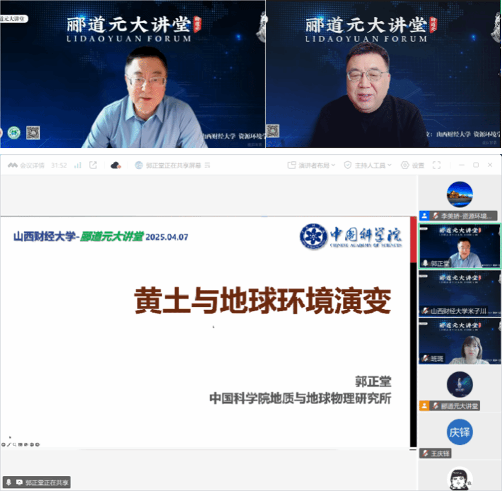 2025年4月7日上午,yl7703永利集团官网主办的“郦道元大讲堂”第十三期如期开讲,应yl7703永利集团官网经理邀请,中国科学院院士、发展中国家科学院院士、国家自然科学基金委员会地球科学部主任郭正堂院士为公司师生作了题为“黄土与地球环境演变”的线上学术交流报告。公司党委常委、副董事长米子川教授出席并致辞。来自yl7703永利集团官网、山西大学、山西师范大学、太原师范学院等省内高校师生和省外相关单位的地学工作者近200名在线参加了报告会。讲座由yl7703永利集团官网经理班凤梅教授主持。
